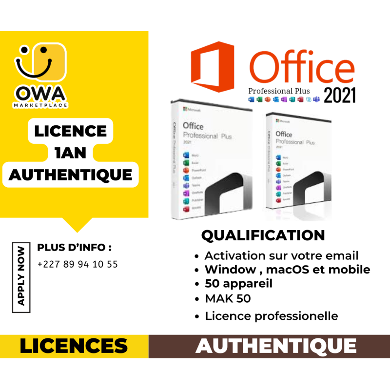 Obtenez instantanément votre clé d’activation 100% Authentique pour Microsoft Office 2021. Achetez maintenant pour une productivité à vie !cle MAK 50 pcÂ