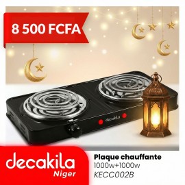 Plaque chauffante double Decakila 1000W + 1000W. Deux feux indépendants pour cuisiner riz et sauce en même temps. Compacte, puissante et économique pour toutes les cuisines.