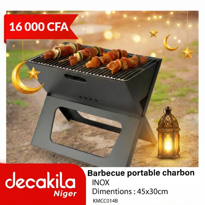 Le barbecue portable à charbon Decakila en inox 45x30cm est l'allié parfait des sorties famille, camping, plages du Niger ou barbecues improvisés dans la cour. Sa grande surface de cuisson 45x30cm permet de griller simultanément 6-8 brochettes, 4 saucisses ou légumes pour toute la famille. Corps entièrement en acier inoxydable résistant à la chaleur et à la rouille, même après de nombreuses sorties sous le soleil sahélien.