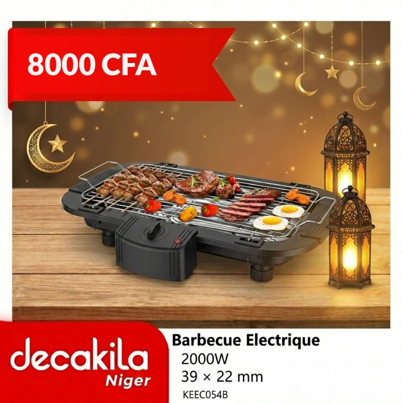 Le barbecue électrique Decakila 2000W avec surface de cuisson 39x22 cm est parfait pour griller viandes, poissons, légumes et brochettes à l'intérieur sans fumée ni odeur, même en appartement à Niamey. Sa puissance exceptionnelle de 2000W chauffe en 3-4 minutes avec thermostat réglable 5 positions (basse pour légumes, haute pour viandes saignantes), assurant une cuisson homogène et des marques de grill parfaites.
