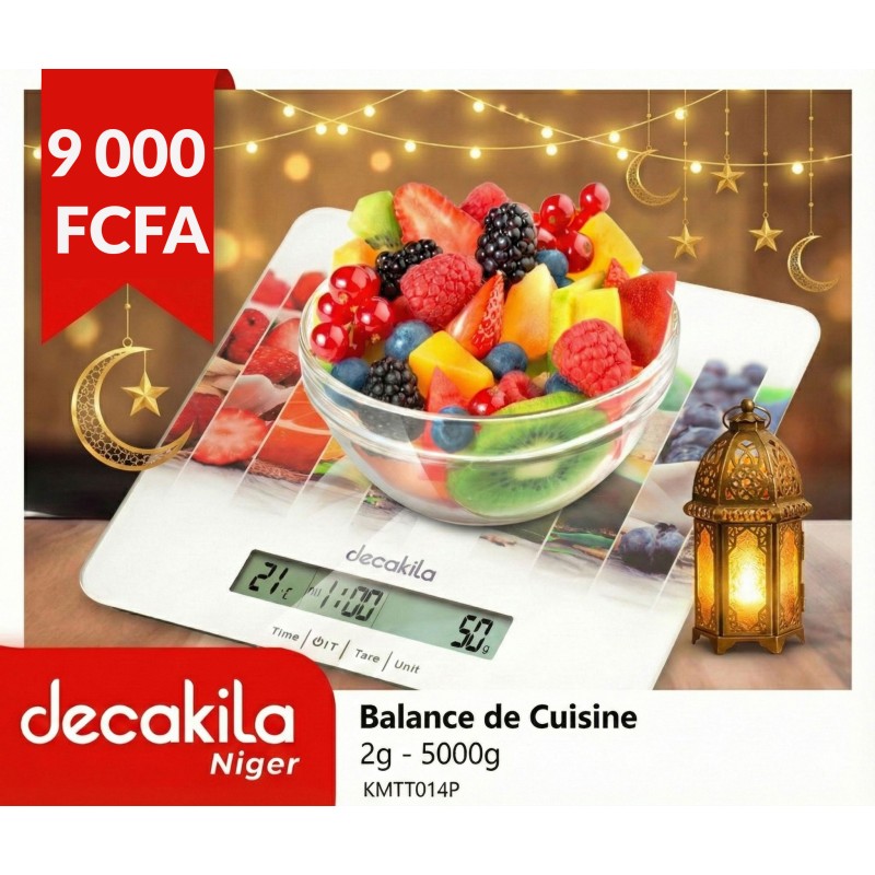 Balance de cuisine Decakila 2g à 5000g, parfaite pour peser les ingrédients avec précision. Compacte, pratique et idéale pour la cuisine quotidienne, la pâtisserie et les portions.