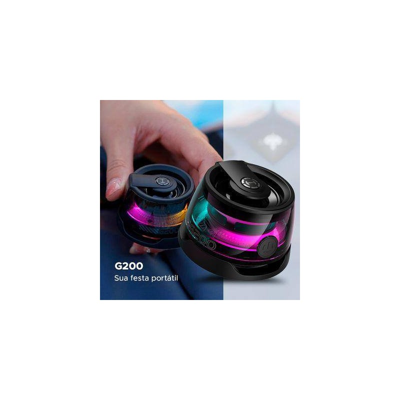 L’Edifier G200 est une petite enceinte sans fil au design transparent et moderne, pensée pour offrir un bon son dans un format très compact. Elle intègre un haut-parleur de 40 mm, une connexion Bluetooth 5.3 stable, et des effets lumineux multicolores qui apportent un style dynamique à vos usages quotidiens.