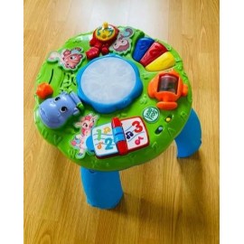 Les pieds sont amovibles, ce qui permet de l'utiliser au sol pour les bébés assis, ou comme table d'activités pour les tout-petits qui se tiennent debout
