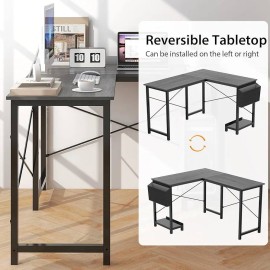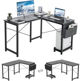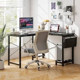 Optimisez votre espace de travail avec ce bureau moderne en forme de L, réversible et pratique. Grâce à son sac de rangement latéral et son support d’hôte, vous gardez tout bien organisé tout en profitant d’un grand plan de travail confortable.