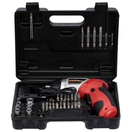 Tournevis sans fil compact et puissant avec batterie intégrée 3.6V, tête articulée flexible, lumière LED et 44 embouts inclus. Idéal pour tous vos travaux de bricolage à la maison.