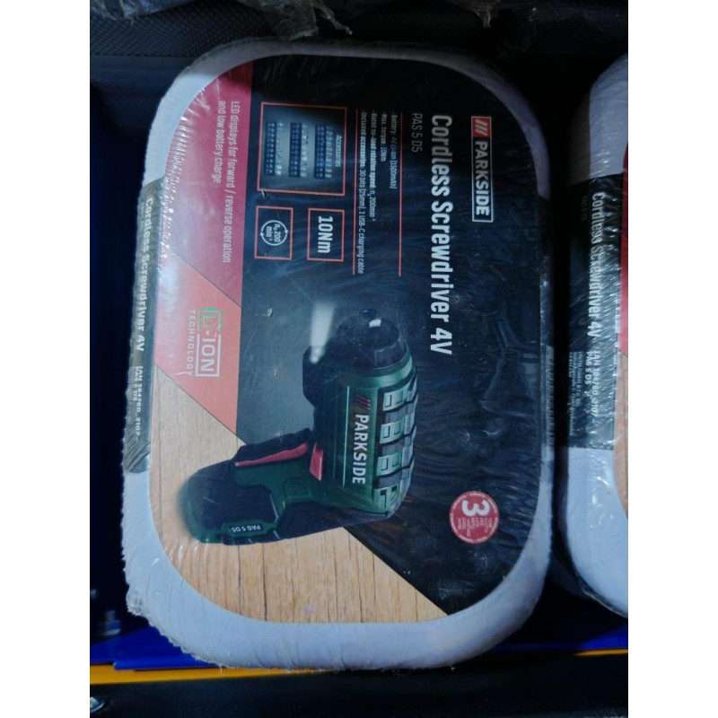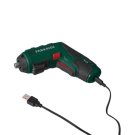 Tournevis sans fil professionnel PARKSIDE 4V avec batterie Li-Ion 1500mAh, couple de 10Nm, affichage LED intégré et 30 embouts inclus. Rechargeable via USB-C. Garantie 3 ans