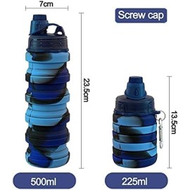 Taille parfaite : elle peut contenir 500 ml d'eau pour vous assurer de rester hydraté pendant les voyages ou le sport. Cette bouteille d'eau pliable en silicone ne pèse que 175 g. L'étirement de la tasse d'eau est de 23,5 cm, et elle mesure 13,5 cm une fois pliée. Le design pliable et léger peut vous aider à économiser 50 % de l'espace.