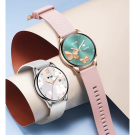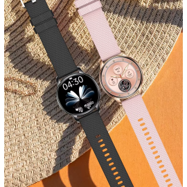 Découvrez la montre intelligente pensée spécialement pour les femmes qui veulent allier style, bien-être et technologie avancée, fréquence cardiaque, appels BT, Avec son écran AMOLED 1,32’’ ultra-clair et son design raffiné.