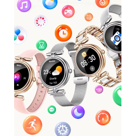 Découvrez la parfaite alliance entre style raffiné et innovation moderne avec notre montre intelligente spécialement conçue pour les femmes. Fine, élégante et polyvalente, elle s’adapte à toutes vos tenues