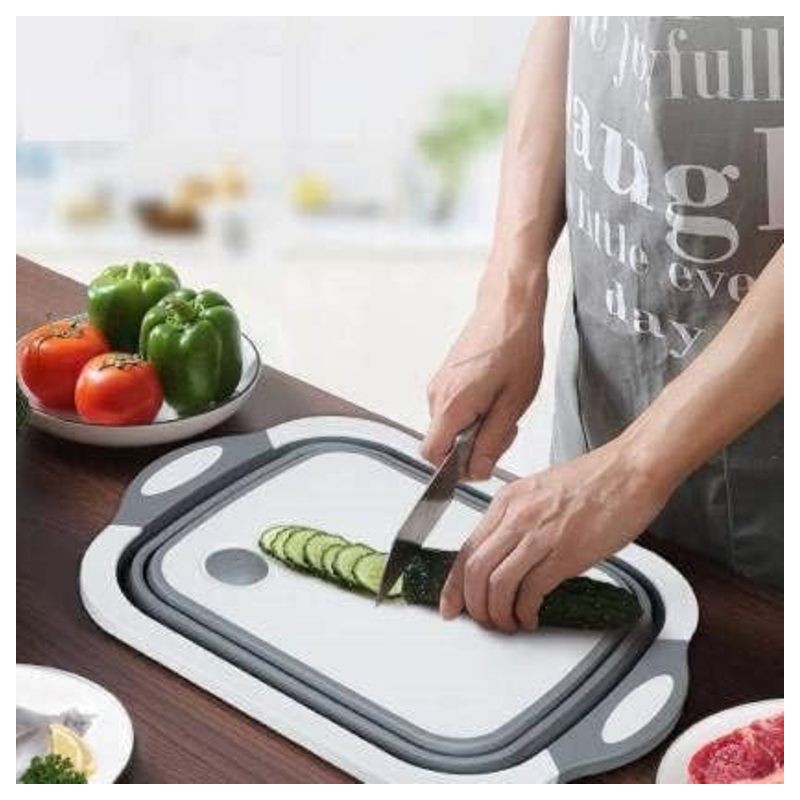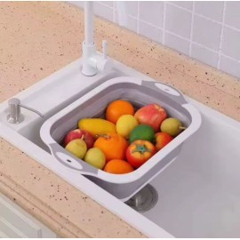 Design peu encombrant comprenant une passoire avec des trous pour filtrer et un bol extérieur pour retenir les liquides. Cette planche à découper multifonction peut être utilisée pour tremper, égoutter la planche à découper, laver et égoutter facilement les fruits et les légumes